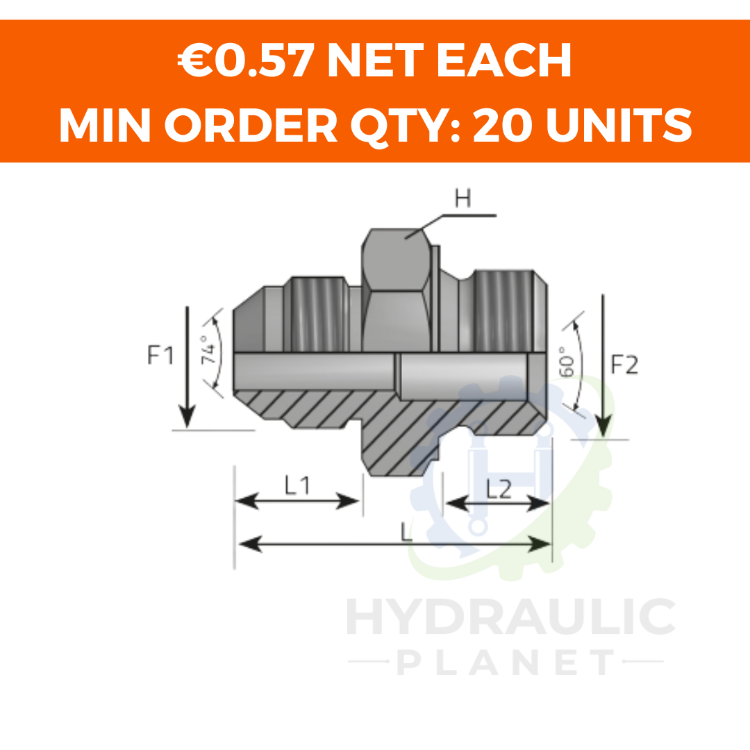 ADAPTOR 7/16″ MALE JIC – 3/8″ MALE BSPP 60° CONE