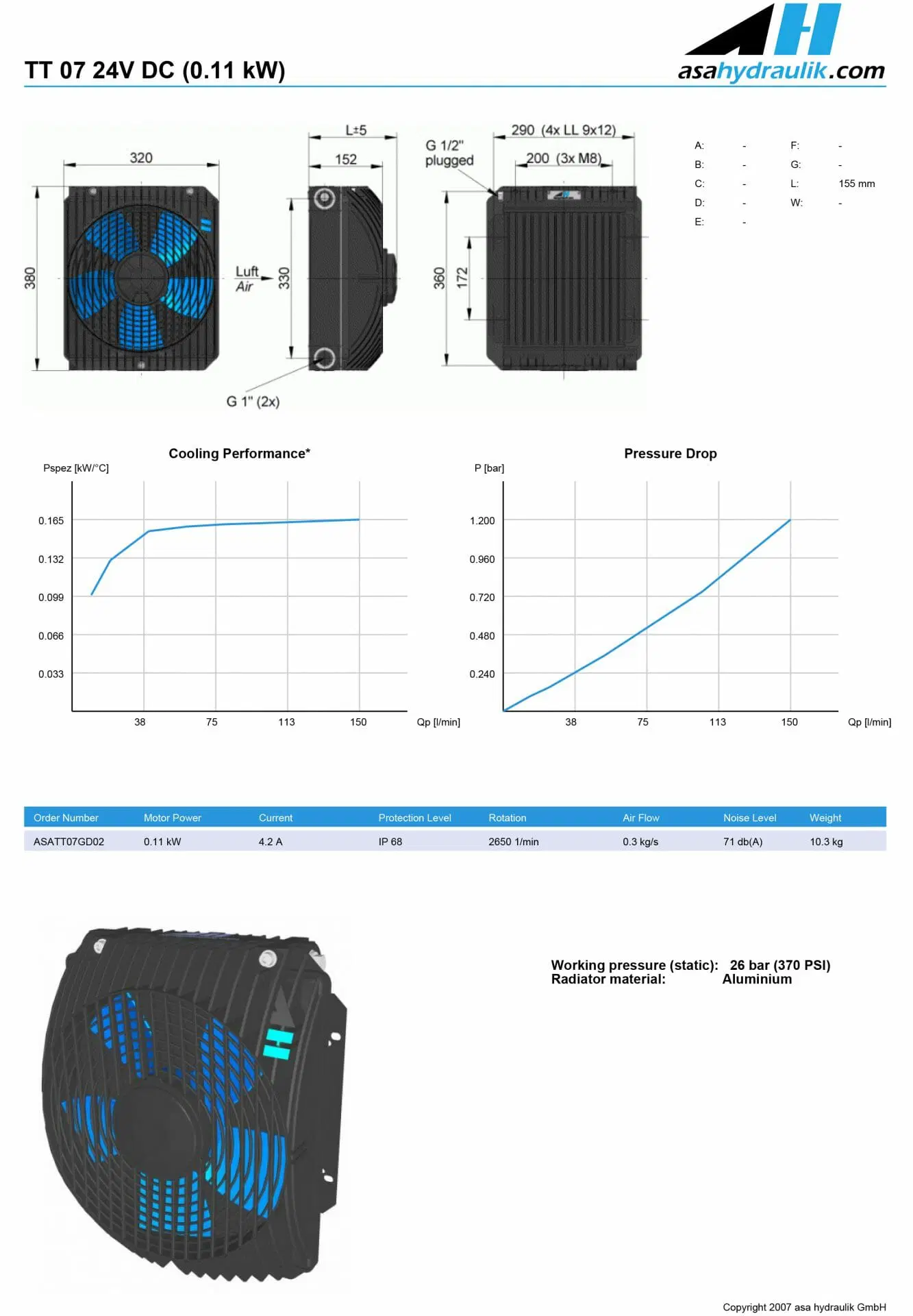 ASA OIL / AIR COOLER TT 07 12 V AND 24V DC + 1″ RAIL CONNECTOR
