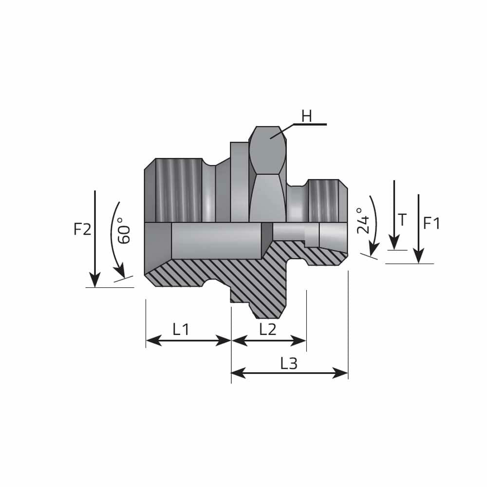 DIN MALE STUD COUPLING SV 60° – BSPP MALE (LIGHT)