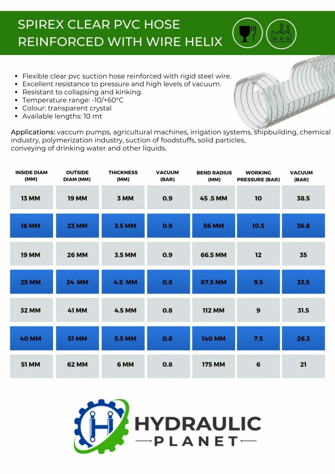 Durable and reliable PVC HELIFLEX SPIREX hose with exceptional resistance to vacuum, even under hard working conditions.