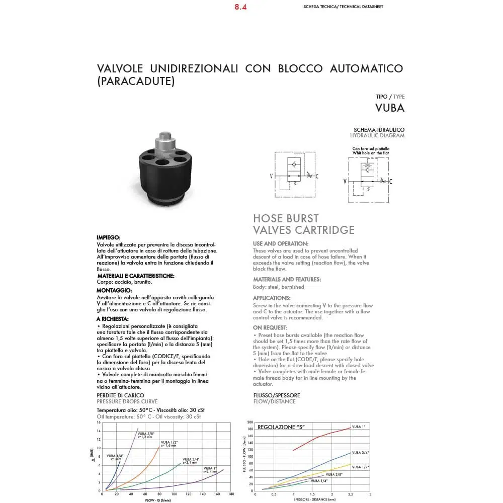 These valves are used to prevent uncontrolled descent of a load in case of hose failure.