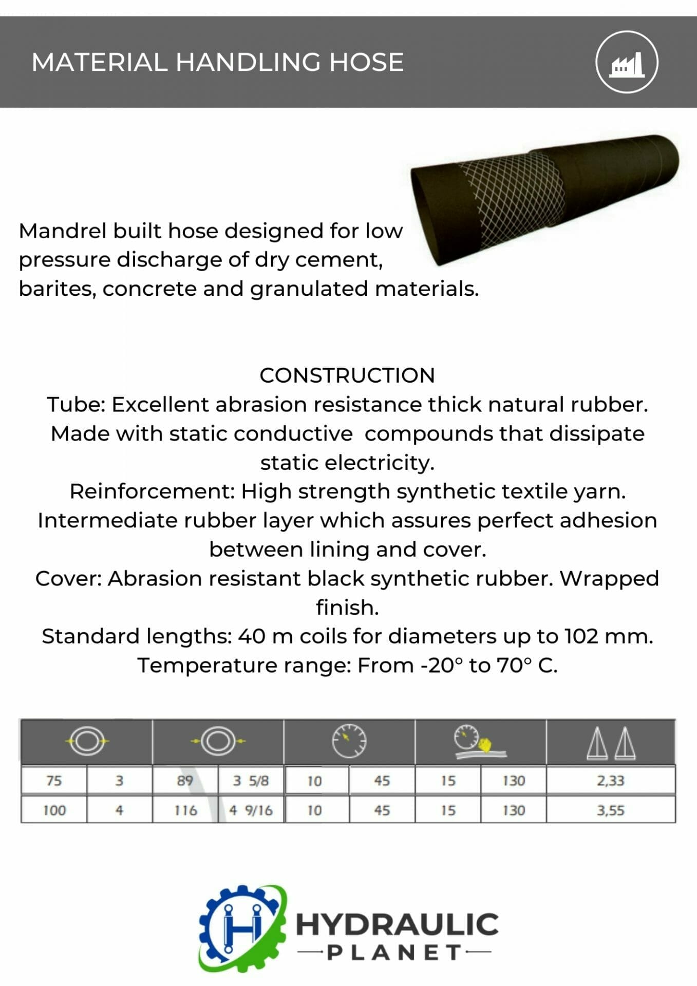 • Tube: Excellent abrasion resistance thick natural rubber. Made with static conductive compounds that dissipate static electricity.
