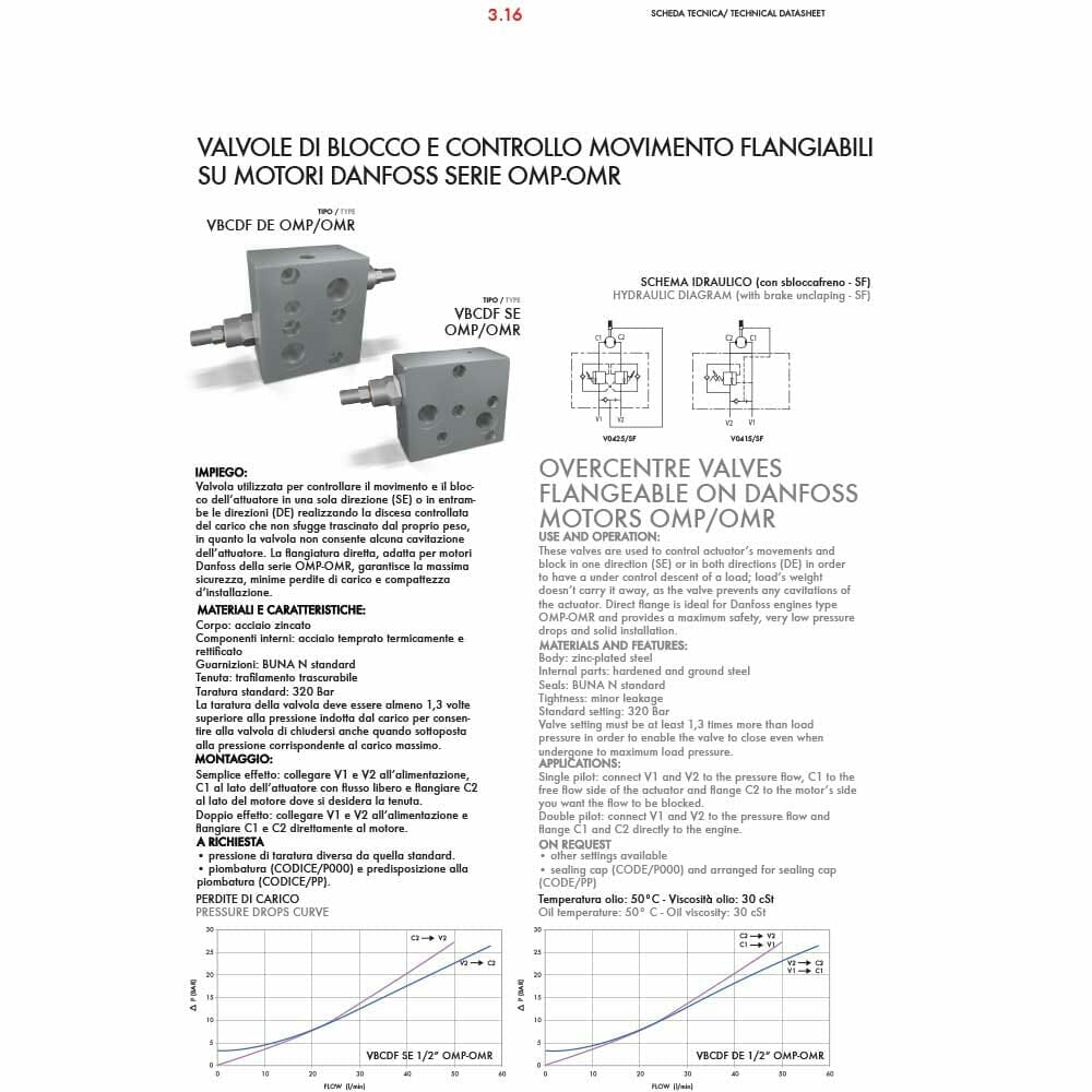 OVERCENTRE VALVES FLANGABLE ON DANFOSS MOTORS OMP/OMR