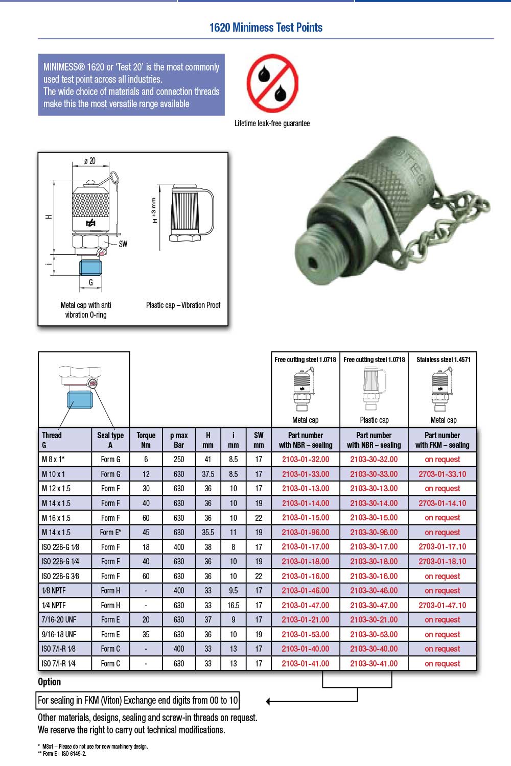 1620 Minimess test point with metal cap and anti vibration O-ring.