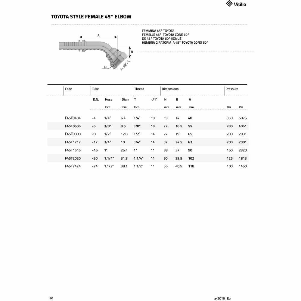 TOYOTA STYLE FEMALE – 45° ELBOW