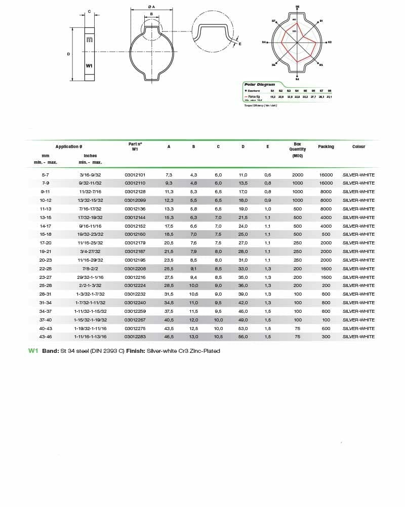 - Band: St 34 steel (DIN 2393 C)